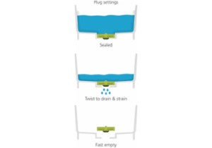 Joseph Joseph Wash & Drain 水槽清洗篮外观时尚简约,超级实用。一体化设计的水塞可以将槽内存水迅速排出,无需端盆倾倒,省时省力。通过水塞防水,还可以将水与食物残渣分离,方便残渣处理,并避免水池堵塞。贴心的大把手设计方便搬拿,斜陡边的设计以防水和肥皂沫飞溅。
