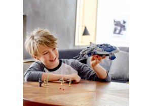 这款是2019新改版的一款,在电影《星球大战三部曲:西斯的复仇》和动画中都有登场,从外形和人物依旧发射器都还原的超棒!外观极具特色的圆盘形机器人炮艇,整体结构和发射器的还原都颇为精致,人偶部分包含尤达大師、武技族和有绿色印刷的机器人。